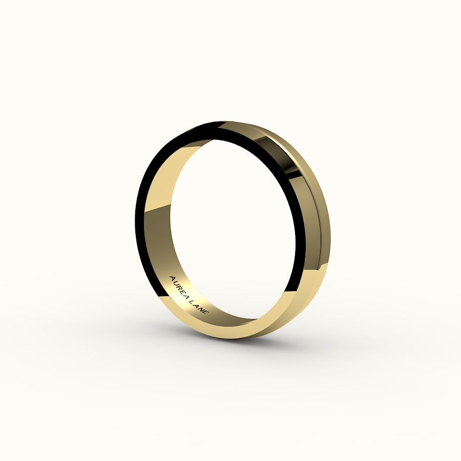 A sculptural ridge slices through the surface of this 4mm band — strong, polished, and deliberate. Made for the bold and design-forward.