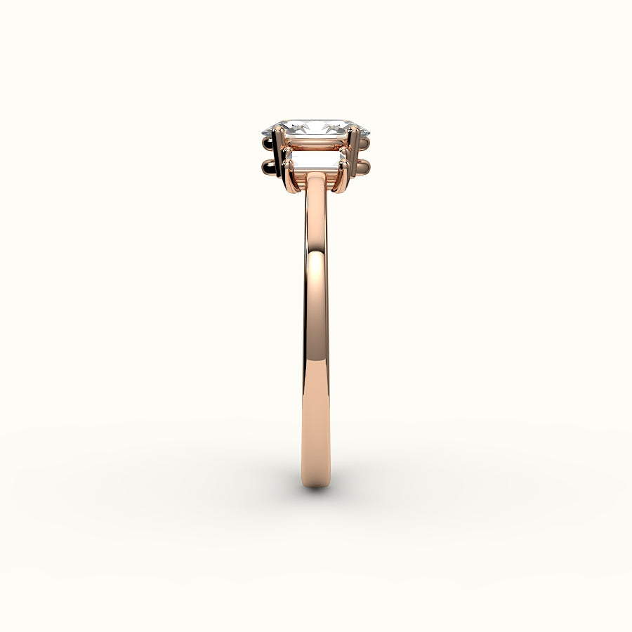 The oval center captures the now, while vertical baguettes frame past and future. A softly glowing trio made to honor all you carry.