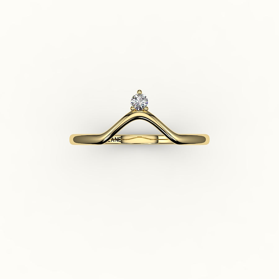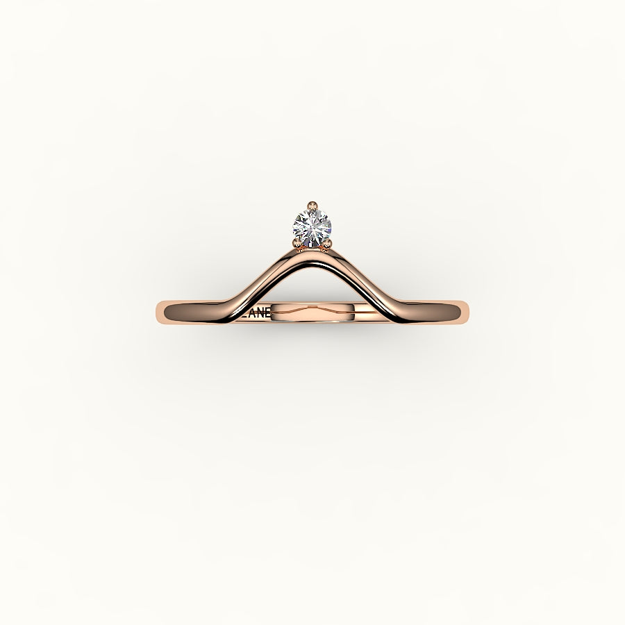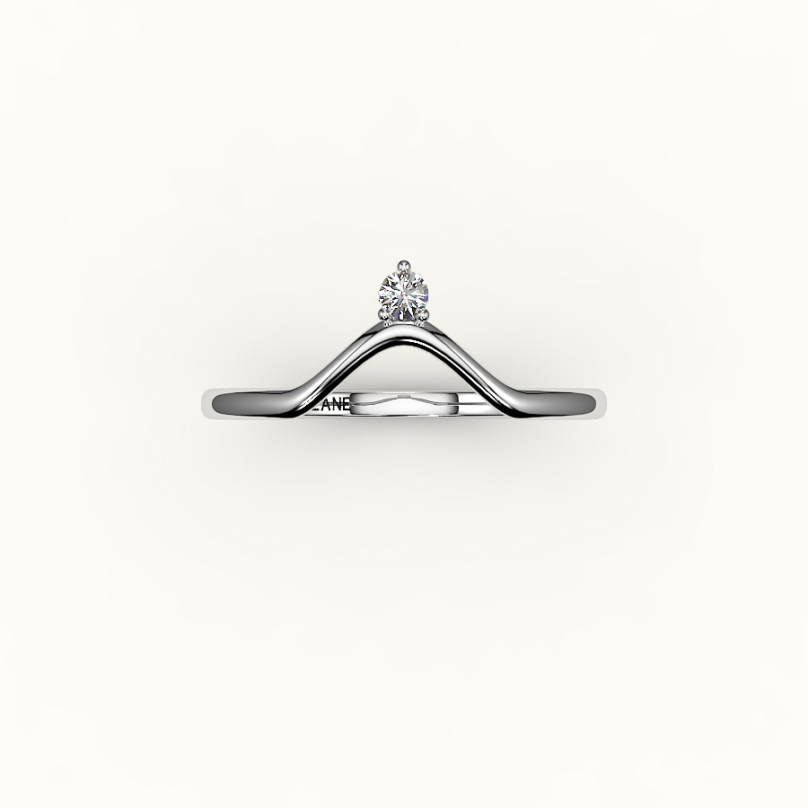 Sculpted to echo the curve of a round stone, this V-shaped band features a tiny diamond resting at its point. A quiet accent with lasting presence.
